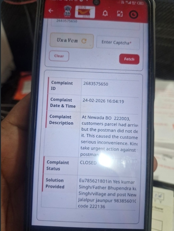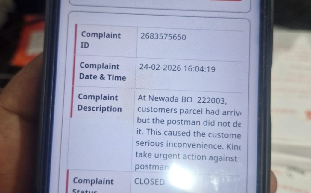 छात्र ने इस मामले में डाक विभाग में शिकायत दर्ज कराई, जिसकी शिकायत संख्या 2683575650 बताई गई है। आरोप है कि विभाग ने बिना स्पष्ट कारण बताए शिकायत को बंद कर दिया। इस घटना से छात्र और उसके परिजनों में भारी रोष है। उनका कहना है कि एक विभागीय लापरवाही ने छात्र के भविष्य के साथ खिलवाड़ कर दिया। अब छात्र ने पूरे प्रकरण की निष्पक्ष जांच कर जिम्मेदार कर्मचारियों के खिलाफ कार्रवाई की मांग की है, ताकि भविष्य में किसी अन्य छात्र को इस तरह की परेशानी का सामना न करना पड़े।