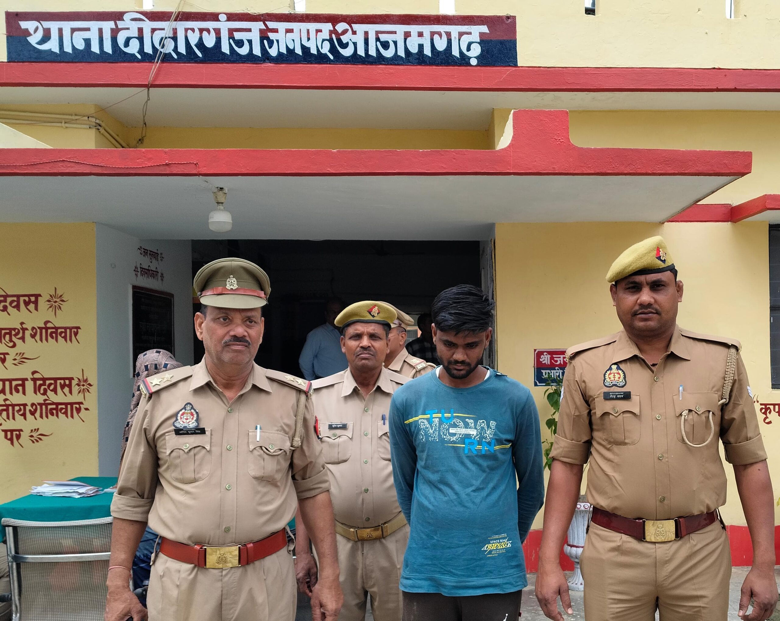 • प्र0नि0 जयप्रकाश, उ0नि0 अनिल कुमार सिंह,हे0का0 तेरसू यादव (थाना दीदारगंज, जनपद आजमगढ़)