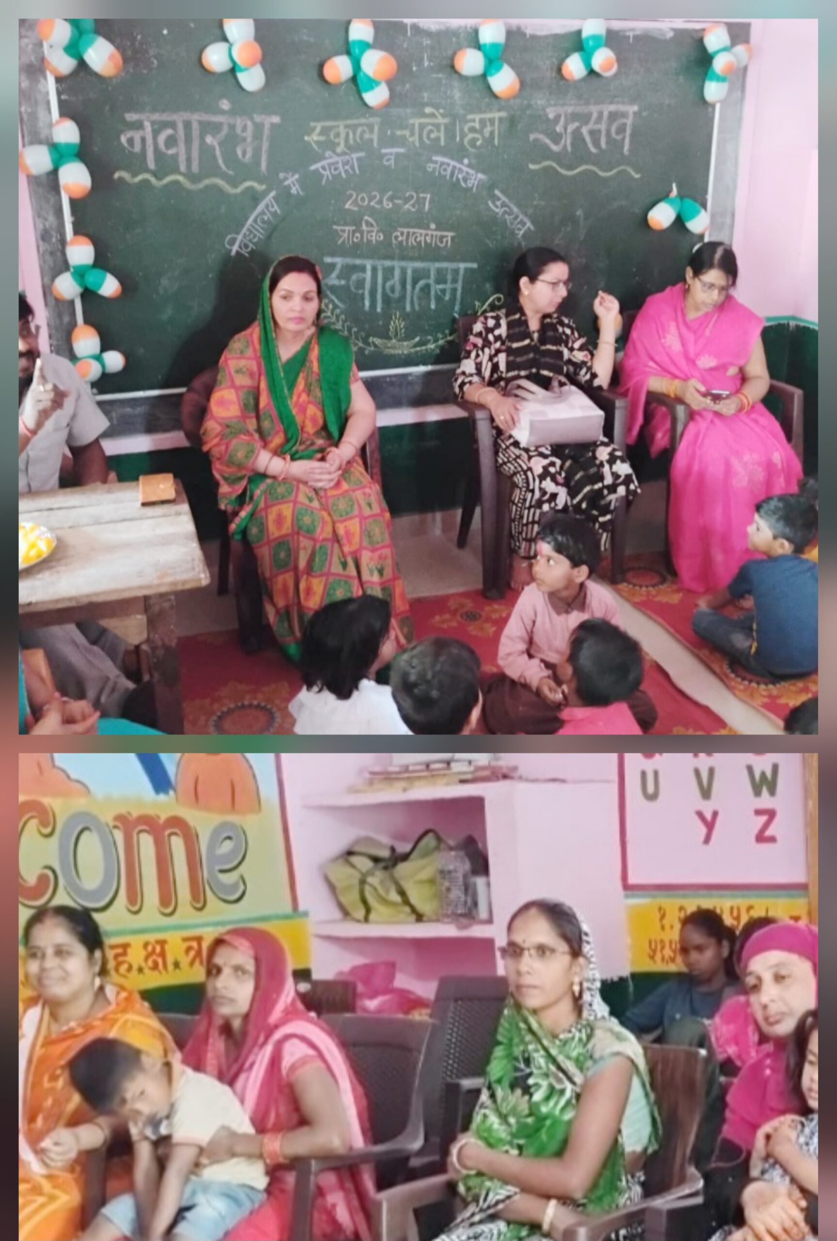 लालगंज (आजमगढ़) नगर पंचायत कटघर लालगंज के प्राथमिक विद्यालय परिसर मे बुधवार को नवारम्भ उत्सव, स्कूल चले हम, कार्यक्रम का आयोजित किया गया। नवारम्भ उत्सव कार्यक्रम का शुभारम्भ प्राथमिक विद्यालय लालगंज के प्रभारी प्रधानाध्यापक अमलेश कुमार गुप्ता व मुख्य सेविका अन्जू शर्मा ने मां सरस्वती के चित्र पर पुष्प अर्पित व दीप प्रज्जलित किया गया। कार्यकम मे उपस्थित अभिभावको को सम्बोधित करते हुए मुख्य सेविका अन्जू शर्मा ने कहा कि तीन वर्ष से पांच वर्ष तक के बच्चो को आगनवाडी मे प्रवेश कराए। जिससे छोटे- छोटे बच्चो को खेल खेल के माध्यम से अक्षर ज्ञान, शब्द ज्ञान कराया जायेगा। जिससे बच्चे को कक्षा एक मे प्रवेश मे असुविधा नही होगी। नये नामांकित बच्चो को आगनवाडी रेखा सिंह ने तिलक लगाकर स्वागत किया। इस अवसर पर अमलेश कुमार गुप्ता, फणीन्द्र कुमार मौर्या, अन्जू शर्मा, बविता गुप्ता, सत्ती सरोज, रिका पाण्डेय, कुसुम सरोज, रिंका यादव, संध्या पाण्डेय, रेखा सिंह, पूजा सोनी, अमर सोनी, गुड़िया, सुनीता, शाहनाज सहित अन्य अभिभावक उपस्थित रहे।