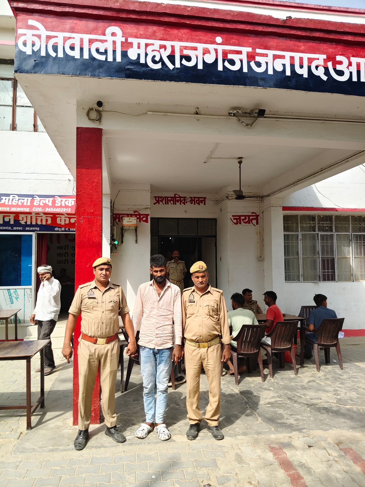 आज दिनांक 12.04.2026 को व0उ0नि0 श्री अजय कुमार यादव मय हमराह द्वारा मुखबिर की सूचना पर मुकदमा उपरोक्त में वांछित अभियुक्त दुर्गेश प्रजापति पुत्र खेलावन प्रजापति निवासी ग्राम अवसानपुर थाना महराजगंज आजमगढ़ उम्र लगभग 28 वर्ष को औघड़बाबा मोड़ (भैरोबाबा मन्दिर) से समय करीब 11.50 बजे हिरासत में लिया गया। अन्य अग्रिम विधिक कार्यवाही प्रचलित है।