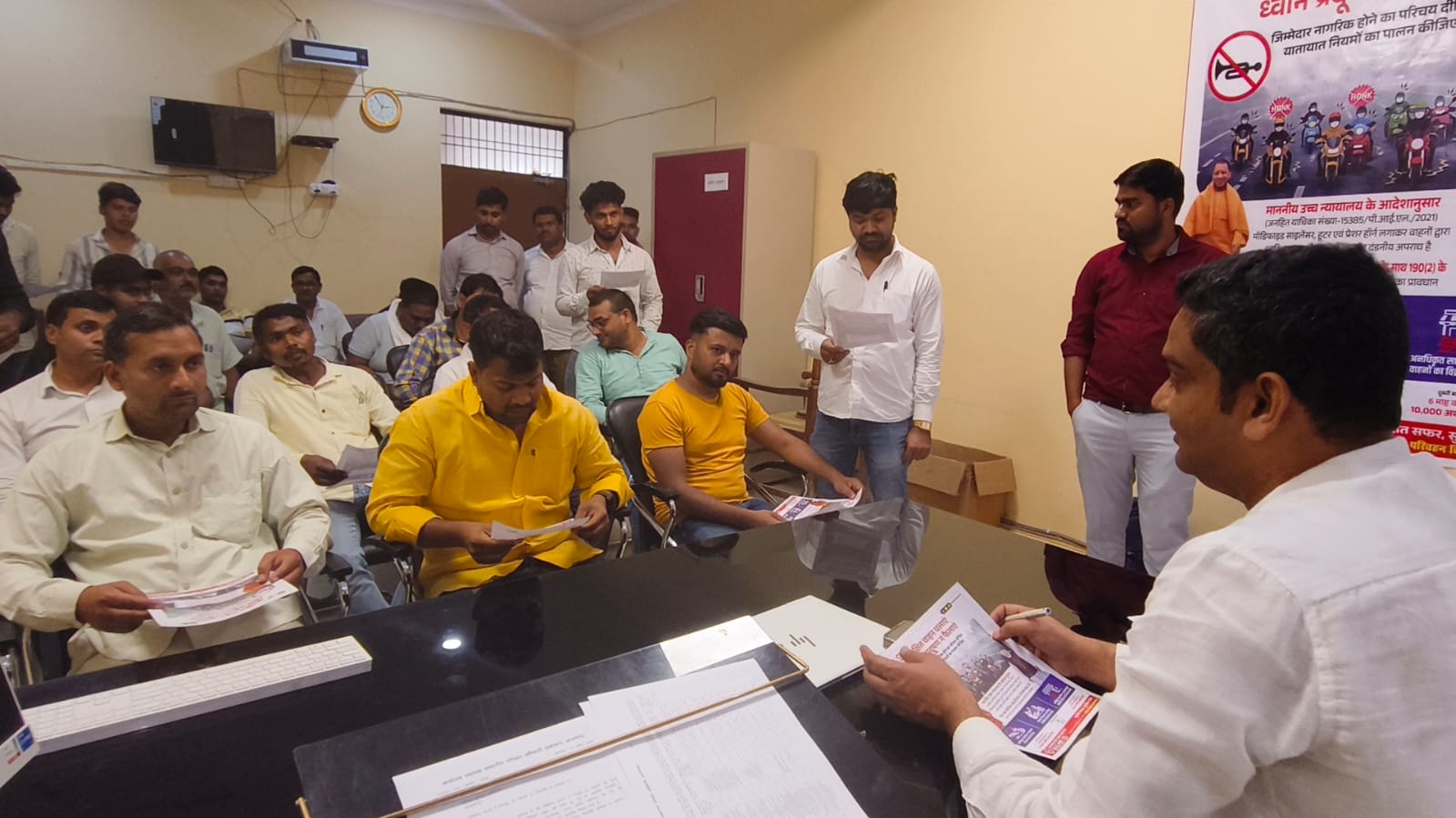 बैठक के दौरान सहायक सम्भागीय परिवहन अधिकारी (प्रवर्तन) ने उपस्थित सभी गैराज संचालकों एवं मैकेनिकों को प्रेशर हॉर्न तथा मॉडिफाइड साइलेंसर का उपयोग कर ध्वनि प्रदूषण फैलाने वाले वाहनों से होने वाले दुष्परिणामों के प्रति विस्तृत रूप से जागरूक किया। उन्होंने बताया कि ऐसे कृत्य न केवल आमजन के स्वास्थ्य पर प्रतिकूल प्रभाव डालते हैं, बल्कि यातायात व्यवस्था को भी बाधित करते हैं।