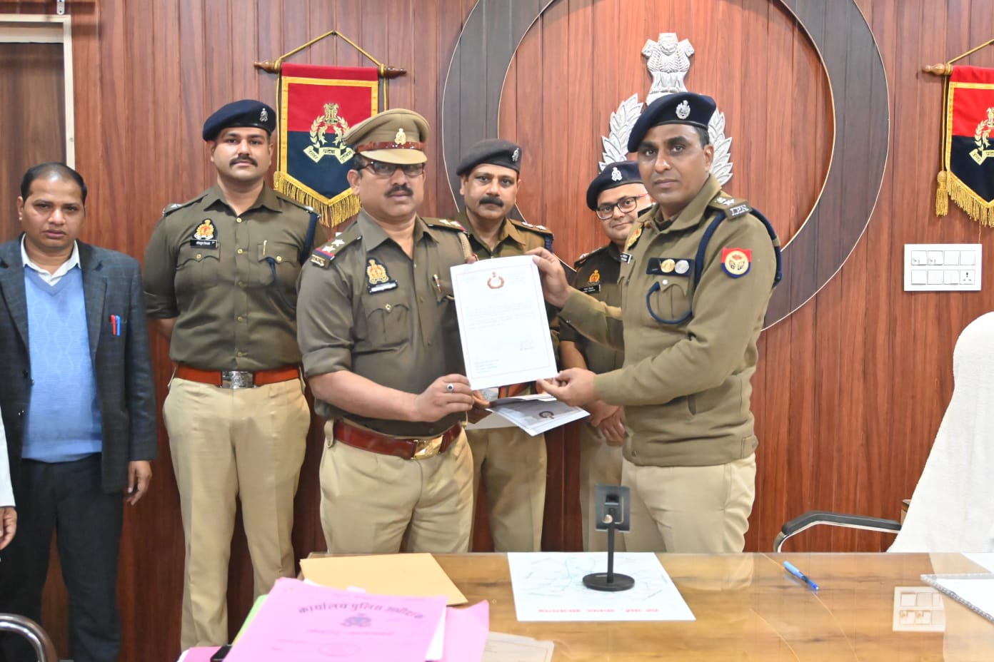 03 वर्ष से अधिक समय से अपहृत किशोरी के मामले में वांछित ₹25,000/- के इनामिया अभियुक्त को गिरफ्तार करने वाले 04 पुलिस कर्मियों को वरिष्ठ पुलिस अधीक्षक आजमगढ़ द्वारा प्रशस्ति पत्र प्रदान कर सम्मानित किया गया